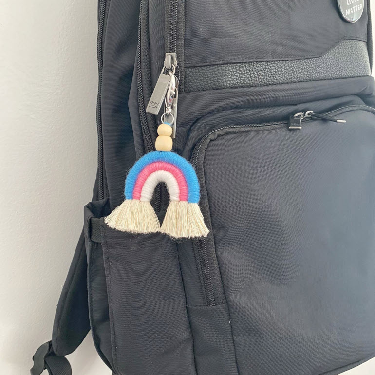 Class participants will receive a kit with everything needed to make this rainbow keychain.